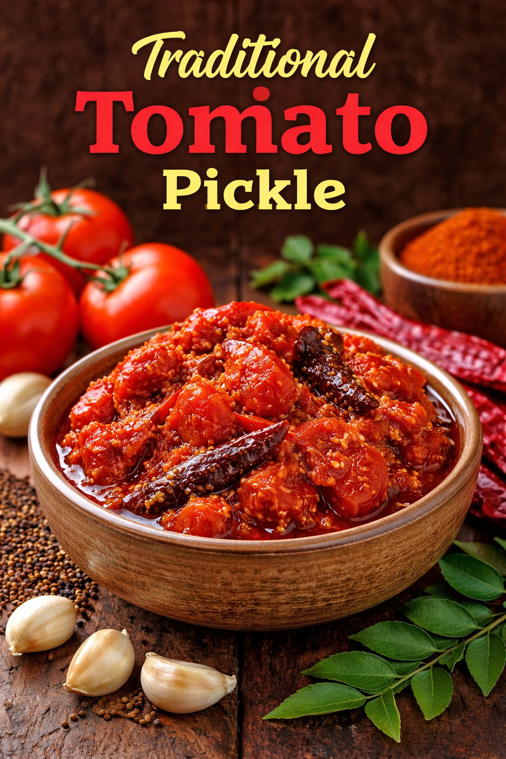 Our Tomato Pickle is slow-cooked to preserve the natural taste of ripe tomatoes while enhancing it with bold Indian spices. Every jar is packed with homemade goodness, ensuring quality, freshness, and unforgettable flavor.